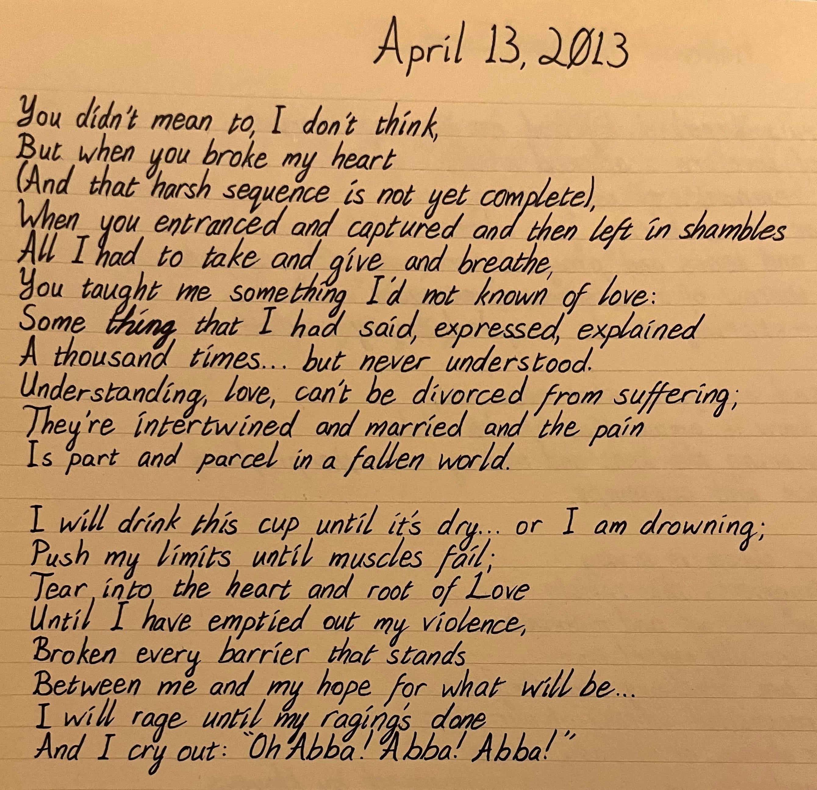 Until I have emptied out my violence