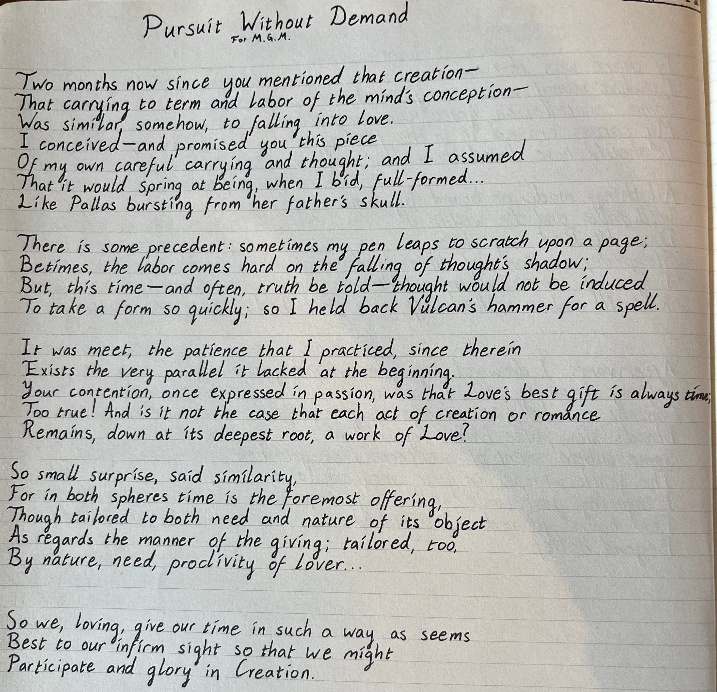 Your contention, once expressed in passion, was that Love’s best gift is always time;